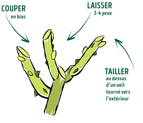 - En ne gardant que les plus belles et grosses branches (saines, sans traces de maladies) et en les raccourcissant.